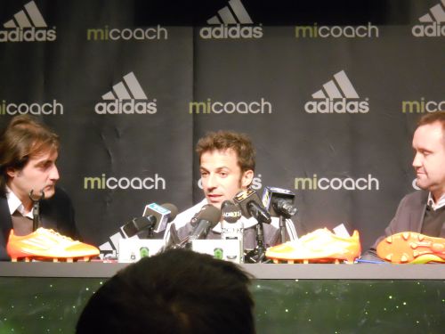 Sui nostri campi le vedremo solo a gennaio, ma Alex Del Piero ha indossato oggi le nuove Adizero, le scarpe “intelligenti” di Adidas. Alla manifestazione di Milano in cui il marchio sportivo ci ha fatto conoscere l’ultima nata nel campo delle scarpe tecnologiche, il capitano bianconero ha partecipato ad una partita e mezza, con i giornalisti prima e con i ragazzi di Fubles poi, il sito in cui si incontrano ragazzi di tutt’Italia per organizzare le partite di calcetto.