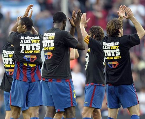 Le maglie sono state indossate ieri sera, nel dopogara di Barcellona-Xeres, e per ora non credo siano sul mercato. Lo saranno (forse) nel caso in cui i blaugrana riuscissero a superare l’Inter ed a qualificarsi per la finale di Madrid 🙂