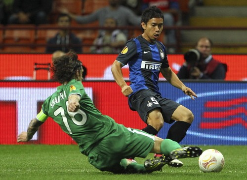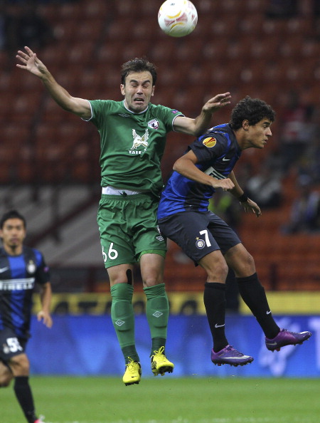 Tutta in salita la gara dell’Inter nella prima giornata della fase a gironi di Europa League. I nerazzurri di Stramaccioni al minuto numero 17′ della prima frazione di gioco erano giĆ costretti ad inseguire il Rubin Kazan, per effetto della rete messa a segno da Ryazantsev, lesto a ribattere in rete la respinta di Handanovic sul rigore di Natcho. I padroni di casa riuscivano ad impattare a pochi minuti dall’intervallo, quando Cassano inventava per Cambiasso, che crossava per il tocco vincente di Livaja.