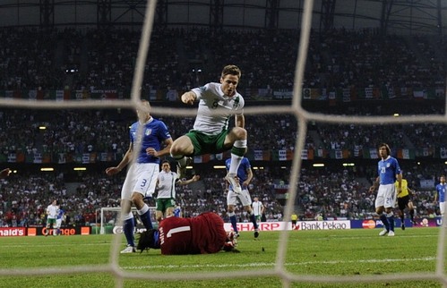 Vincere e sperare che Spagna e Croazia non confezionassero l’ennesimo amaro biscotto per i colori azzurri. L’Italia scendeva in campo contro l’Irlanda sapendo che il proprio destino era soprattutto nelle mani e nei piedi di 22 professionisti che cercavano la qualificazione su un altro terreno di gioco. Una condizione psicologica non favorevole per l’undici di Prandelli, costretto a fare i conti con tristi corsi e ricorsi storici.
