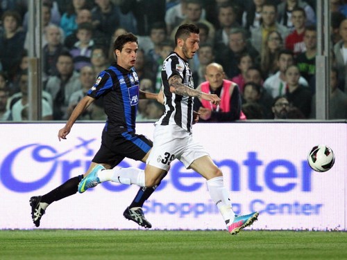 La Juventus vola con una rete di Matri e anche a scudetto già acquisito batte l’Atalanta a domicilio e viaggia verso un nuovo obiettivo: il record di punti registrato dalla Juve di Capello. L’Atalanta non ha demeritato ma ha dovuto arrendersi dinnanzi l’incredibile voglia di vincere dei bianconeri. Sconfitta non drammatica comunque, visto che la caduta del Palermo rende matematica la salvezza degli orobici. La partita è stata macchiata da scontri tra le tifoserie prima e durante la gara, che hanno costretto l’arbitro a una breve interruzione.