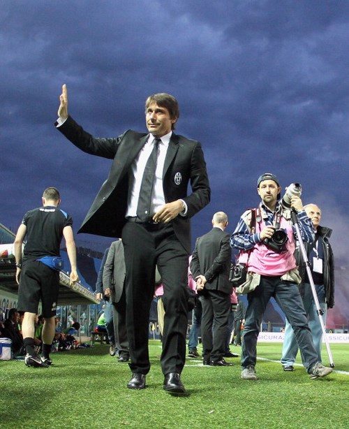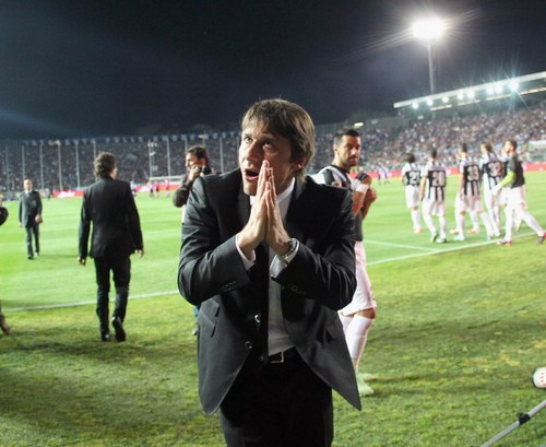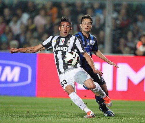 La Juve fa capire subito di voler vincere anche questa partita e passa in vantaggio al 18′: Pirlo serve con un lancio verticale Matri che aggancia con il destro e conclude con il sinistro. Un gol splendido che vale l’1-0. I padroni di casa provano la reazione, ma Denis non è preciso. La partita viene interrotta al ventottesimo per il lancio di oggetti tra le due tifoserie: Conte si reca infuriato sotto il settore dei tifosi bianconeri, i più caldi, per cercare di calmarli. Si riparte e l’Atalanta va di nuova vicina al pareggio ancora con Denis, che questa volta è sfortunato a colpire il palo.