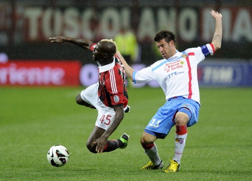 La ripresa è all’apparenza lo specchio della prima parte, ma i padroni di casa continuano a soffrire la perfetta chiusura difensiva dei catanesi, devastanti peraltro con le loro ripartenze. Una di queste porta al nuovo vantaggio etneo: Barrientos porta palla su contropiede e serve Bergessio che batte Amelia con un delizioso pallonetto. Sembra il colpo del kappao e invece Allegri ha l’intuizione giusta di inserire Pazzini che nel giro di pochi minuti ribalta la gara con una doppietta. Il 3-2 è però viziato da un fallo che avrebbe annullato l’azione. Le proteste del Catania si spengono però nel vuoto così come le speranze e la forza di portare a casa almeno un pareggio: nel recupero, Balotelli conquista un calcio di rigore, lo trasforma e chiude definitivamente la pratica.