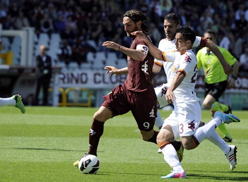 È l’italo-argentino ex Fiorentina a sbloccare la gara con un buon colpo di testa su cross di Balzaretti (che verrà poi espulso nella ripresa). Nonostante il turn-over voluto da Andreazzoli in vista del ritorno della semifinale di Coppa Italia, la Roma tiene bene il campo ma deve capitolare di fronte a un errore difensivo di Burdisso che regala palla a Bianchi il quale ovviamente non se lo fa ripetere due volte e mette dentro di potenza. I padroni di casa partono forte nella ripresa ma vengono puniti da un gran gol di Lamela al quindicesimo. Roma vicina anche al tris, poi forcing Torino nel finale. Il risultato però non cambia.