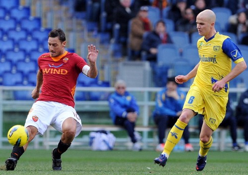 Due rigori di Francesco Totti consentono alla Roma di battere il Chievo. I giallorossi andavano in vantaggio al minuto numero 34 della prima frazione di gioco, per poi chiudere i conti al 78′. La Roma si porta a quota 27 in classifica, mentre i gialloblu restano fermi a 20. 2-0 anche per il Bologna, che batte il Catania e stacca le ultime tre in classifica. Le reti dei felsinei arrivavano nella ripresa, prima con Cherubin al 58′, poi con capitan Di Vaio a pochi istanti dal fischio finale.