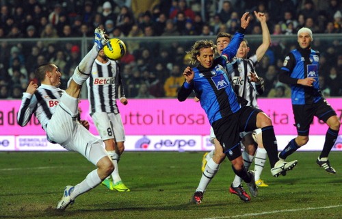Il muro degli orobici reggeva fino al minuto numero 55, allorché Lichtsteiner raccoglieva un assist di Pirlo e trafiggeva Consigli. Al minuto numero 82 toccava a Giaccherini scrivere il proprio nome sul tabellino dei marcatori e portare la Juventus su un tranquillo 0-2.