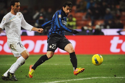 Il gol mi è venuto istintivo quando ho visto Marchetti fuori dai pali. È valso tre punti e questo lo rende ancora più bello. Siamo contenti della vittoria, anche se stasera non siamo stati brillanti. Stiamo facendo bene, con Milito davanti ci troviamo e spero di continuare a fare gol così.