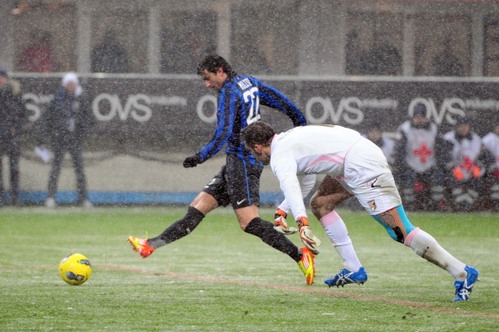 Fuochi d’artificio al Meazza di Milano, dove un’Inter ferita dalla sconfitta di Lecce cercava il pronto riscatto in campionato. Di fronte ai nerazzurri c’era il Palermo di Bortolo Mutti, finora deludente lontano dal Barbera e desideroso di regalare qualche soddisfazione ai tifosi anche al di fuori delle mura domestiche.