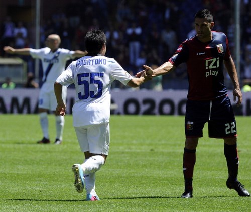 Il Genoa inizia con un occhio a quanto accadeva tra Fiorentina e Palermo, ma preferisce cercare i tre punti per evitare calcoli. E infatti nella prima parte i padroni di casa ci provano e vanno vicini al vantaggio con Borriello e Bertolacci, e il solito Handanovic evita all’Inter quella che avrebbe rischiato di diventare la sedicesima sconfitta di questo disastroso campionato. Arriva però la notizia che il Grifone aspettava: Luca Toni porta in vantaggio la Fiorentina, si può frenare.