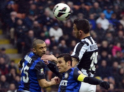 La Juventus alza la voce e urla in direzione Napoli: non c’è trippa per gatti. Ma lo fa anche in direzione Monaco di Baviera: pronti, più che pronti per l’andata dei quarti di Champions League contro il Bayern. Una vittoria sofferta quella ottenuta sul campo dell’Inter, ma importantissima per il morale oltre che per la classifica. Come promesso da Conte alla vigilia, i bianconeri scendono sul prato verde di San Siro bagnato dalla pioggia con la giusta cattiveria e non distratti dalla Champions. Tanto che passano solo tre minuti che Quagliarella, schierato all’inizio in attacco con Matri, si inventa un destro micidiale dal limite dell’area che non lascia scampo ad Handanovic. È 1-0. La Juve insiste e mette in difficoltà l’Inter, incapace di reagire allo strapotere juventino. I padroni di casa possono contare però sulla qualità dei suoi solisti e creano qualche occasione nella seconda parte di frazione, con Buffon a opporsi splendidamente su Palacio.