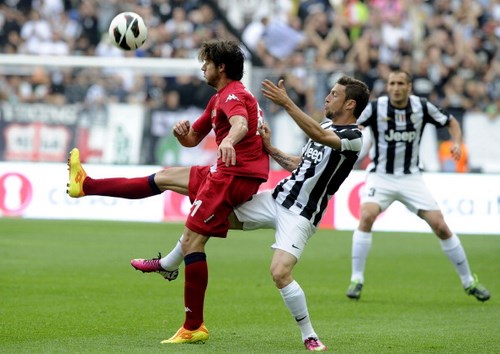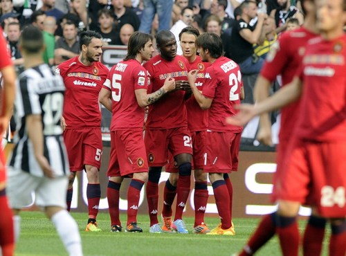 La Juventus festeggia il secondo scudetto consecutivo con un pari interno per 1-1 contro il Cagliari già salvo. Clima di festa, come era lecito attendersi, allo Juventus Stadium per un match dai ritmi bassi che ha portato a un pareggio complessivamente giusto. Il Cagliari si era portato a sorpresa in avanti con Ibarbo, poi il pareggio juventino firmato Vucinic nella ripresa. Sfuma il record di punti per la squadra di Conte.