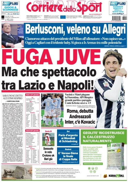 Le prime pagine dei giornali sportivi di oggi 10 febbraio 2013