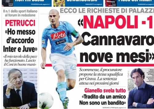 La decisione del pm Palazzi ha lasciato sorpresi visto che, mentre con la Juve ed altri club ci era andato giù pesante (il Siena era stato penalizzato di ben 6 punti), ha chiesto solo un punto per i partenopei. Il Corriere dà anche spazio al “cattivo” di turno, quel Matteo Gianello che avrebbe combinato la partita e che racconta anche la sua.