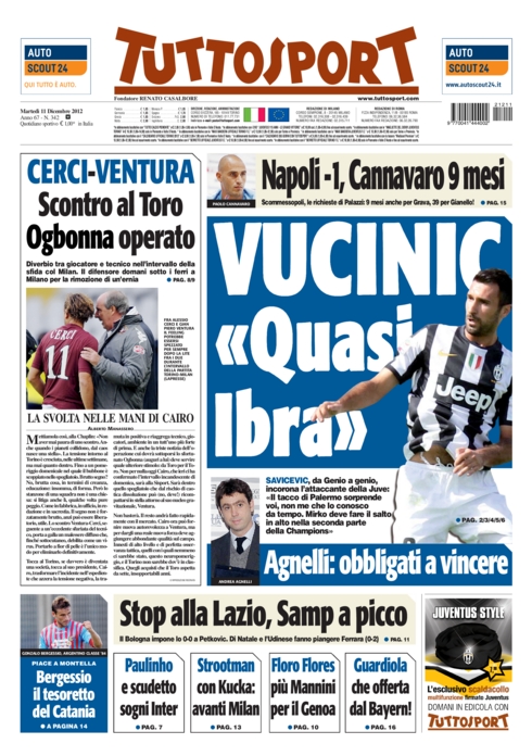 Le prime pagine dei giornali sportivi di oggi 11 dicembre 2012
