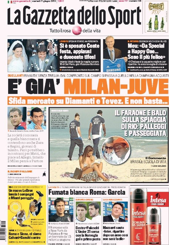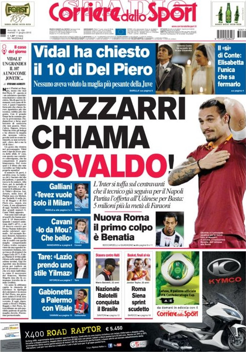 Le prime pagine dei giornali sportivi di oggi 11 giugno 2013