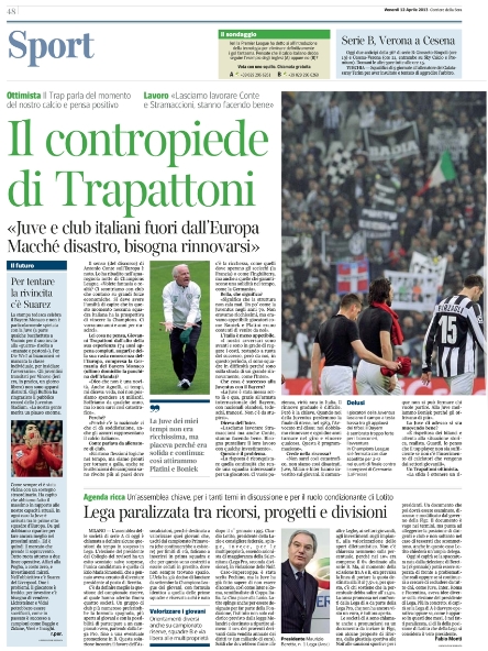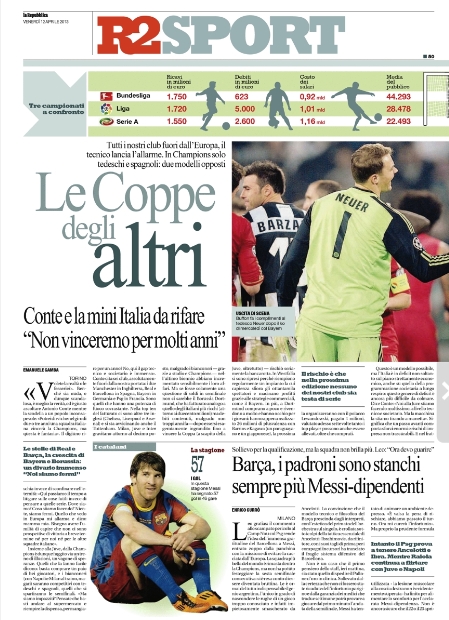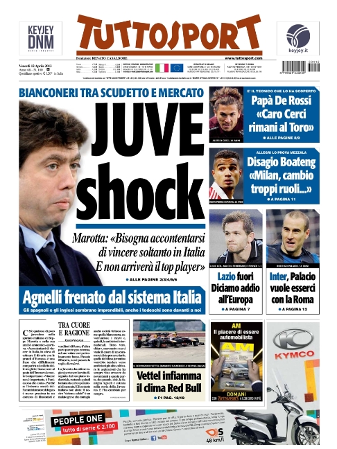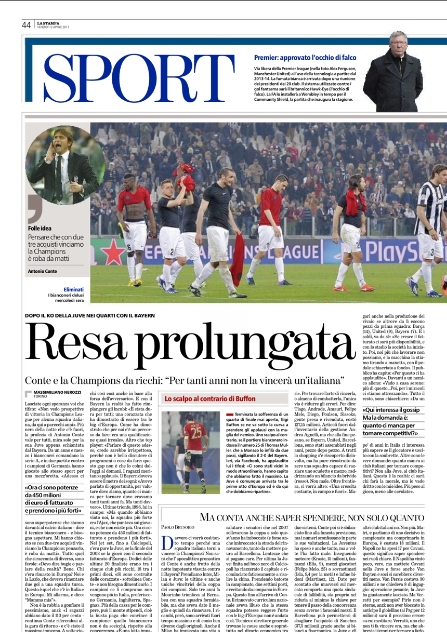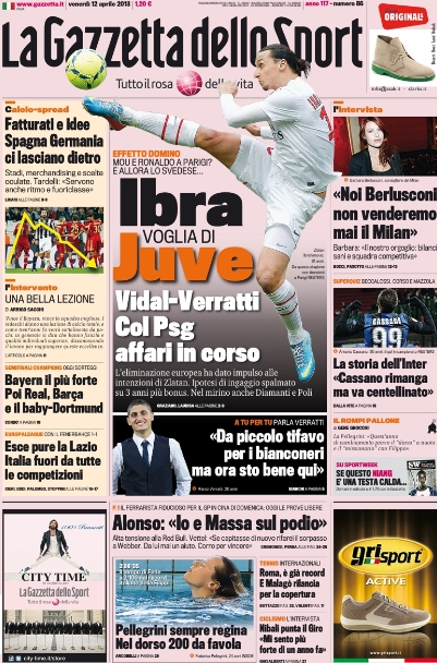 Le prime pagine dei giornali sportivi di oggi 12 aprile 2013