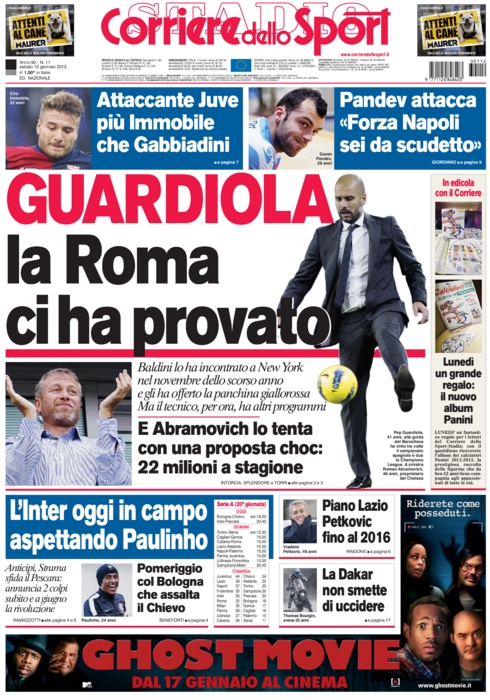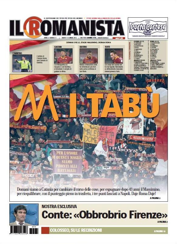 Ma si parla anche di allenatori quest’oggi, come quello del Milan che dal prossimo anno potrebbe essere Donadoni, e quello della Roma che sarebbe potuto essere Guardiola, se avesse accettato l’offerta di Baldini arrivatagli due mesi fa. Ma a quanto pare con Abramovich non si può competere. Chiudiamo proprio con la Roma, o per meglio dire con il Romanista, che incoraggia i suoi beniamini nella difficile trasferta del Massimino di Catania dove non vince da 43 anni. Sarà la volta buona?