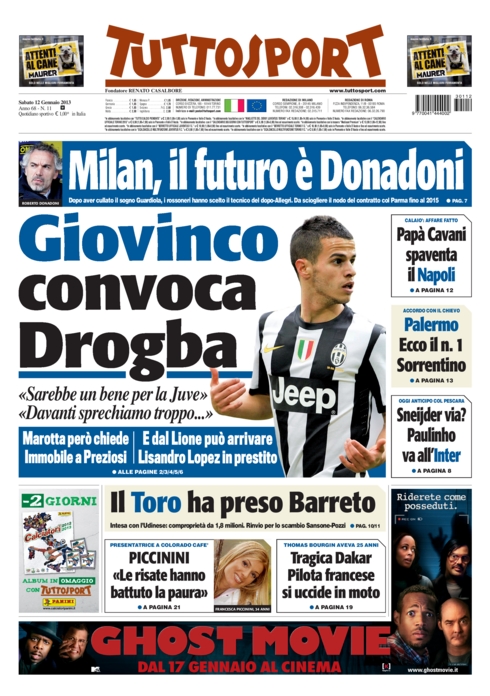 La novità di mercato è un’altra però, e cioè il probabile prestito di Lisandro Lopez alla Juventus. L’attaccante del Lione, una volta considerato molto appetibile ed ora solo una seconda scelta, potrebbe risolvere i problemi bianconeri in attacco ed in cassa. Il suo arrivo infatti farebbe risparmiare i tanti milioni che ci vogliono per Drogba, e dare il tempo di arrivare a Llorente a parametro zero. Ne sono convinti sia la Gazzetta che Tuttosport, che però preferirebbe avere subito l’ivoriano.