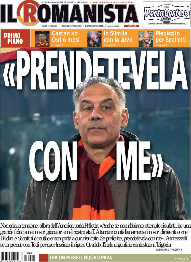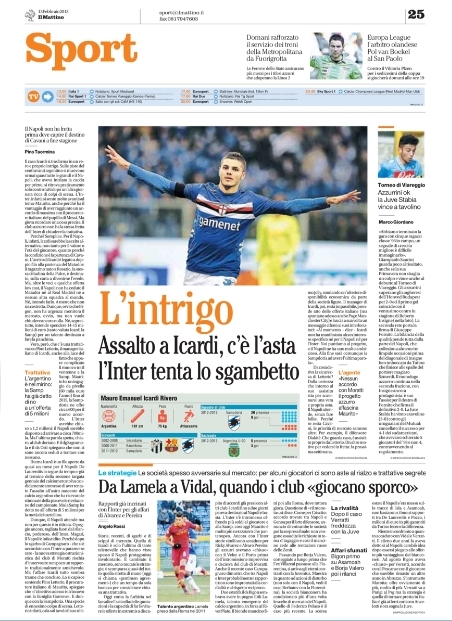 I titoli vanno dallo Juve-Show alla Magnifica Signora, dal simpatico “La Juve suona Lennon” di Libero al Mamma che Juve! della Gazzetta. Qualche trafiletto dedicato a qualche altra notizia però c’è. In risalto ci sono il caso Icardi, conteso da Inter e Napoli, ed il mercato del Milan. Il Romanista invece apre con le contestazioni alla squadra e con James Pallotta che fa da parafulmine, chiedendo che se proprio i tifosi devono prendersela con qualcuno, che se la prendano con lui. Vediamo le aperture di oggi.