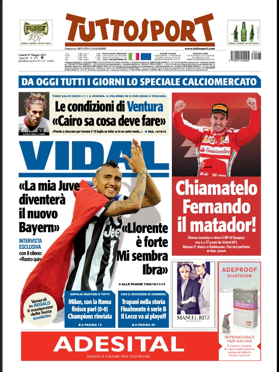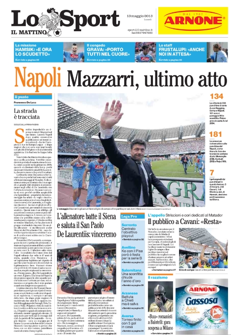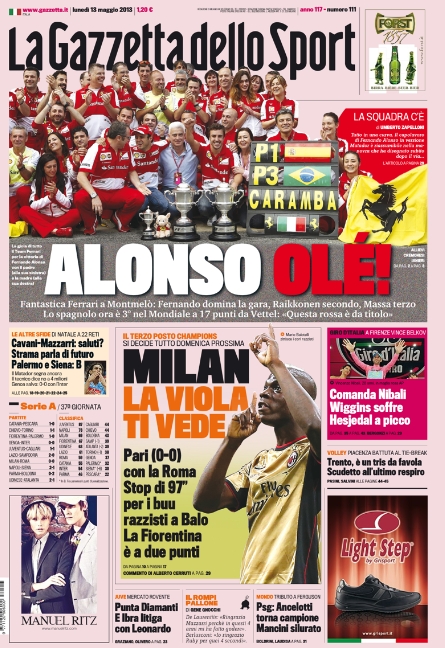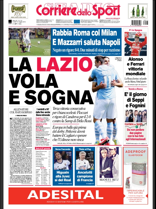 Le prime pagine dei giornali sportivi di oggi 13 maggio 2013