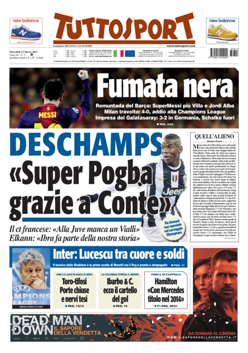 Meglio quindi allargare lo sguardo e vedere cosa accade altrove. In Serie A la notizia di giornata è che la società della Roma è riuscita ad ottenere una sorta di tessera del tifoso speciale che, pur senza registrazioni o vincoli particolari, permette ai suoi tifosi di andare in trasferta ovunque. Chissà che non sia il primo passo verso l’abbandono di una regola che nessuno vuole. E poi ci sono le altre squadre come il Napoli che cerca di riprendersi dal brutto periodo, l’Inter che fa scattare il classico toto-nomi per il sostituto di Stramaccioni, e la Juve che si gode la sua stella Pogba ma chiude ad Ibrahimovic. Questo ed altro nelle prime pagine di oggi.