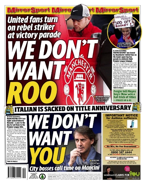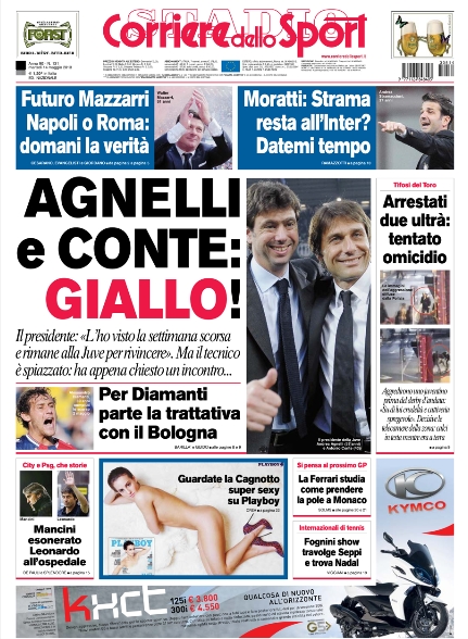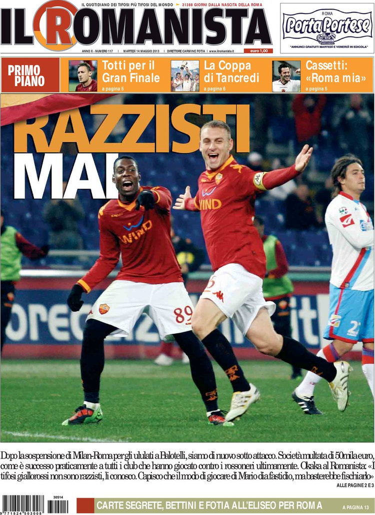 In casa nostra invece Mazzarri ieri è stato visto a Milano, è evidente che sta trattando con l’Inter e secondo molti giornali di oggi starebbe valutando se scegliere i nerazzurri o la Roma, con i giallorossi che puntano ancora Allegri, ma che aspettano la fine della stagione per dargli l’assalto. Chiudiamo come sempre con il Romanista che sottolinea il fatto che i tifosi giallorossi non sono razzisti (nonostante i buu a Balotelli che hanno fatto vergognare l’Italia). Ma come sottolinea Okaka, i tifosi di un po’ tutte le squadre ce l’hanno con l’uomo Balotelli e non con il colore della sua pelle. Certo, un po’ di maturità da parte di tutti non farebbe male.