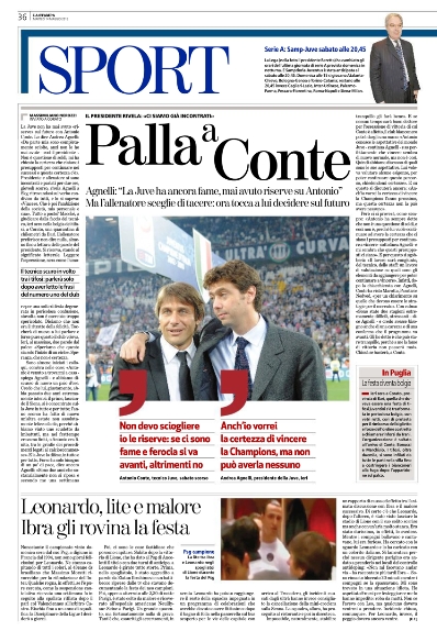 Antonio Conte ritorna a far tribolare l’ambiente juventino. Mentre ieri Andrea Agnelli tranquillizzava tutti affermando di aver incontrato il tecnico e che è tutto apposto, poche ore dopo è intervenuto proprio Conte dicendo che ha appena chiesto l’incontro. Quindi o Agnelli ha incontrato il sosia (forse Crozza travestito?) o uno dei due sta mentendo. Nel dubbio, i tifosi bianconeri non possono dormire sonni tranquilli.