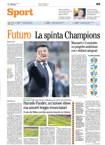 Tornando al campionato c’è chi si lecca le ferite come il Milan che ora ha in casa un’altra grana, quella di El Shaarawy, che dopo un inizio di stagione strepitoso ora comincia a mostrare tutti i suoi 20 anni. Ma vediamo come trattano i vari temi i giornali di oggi.