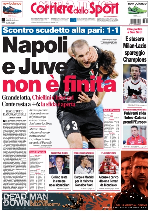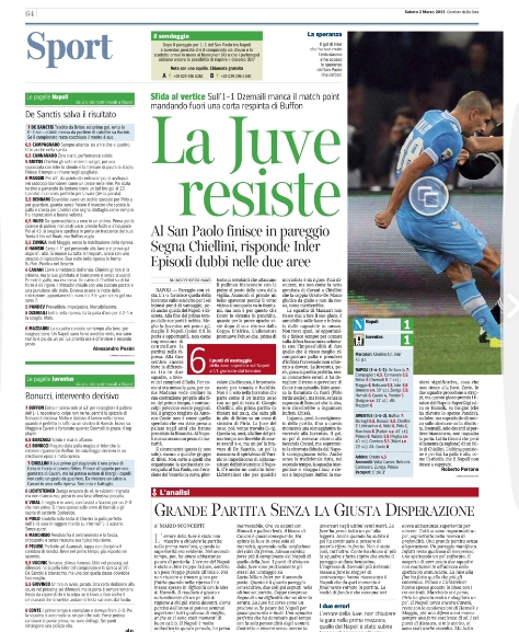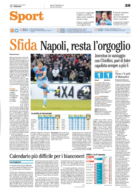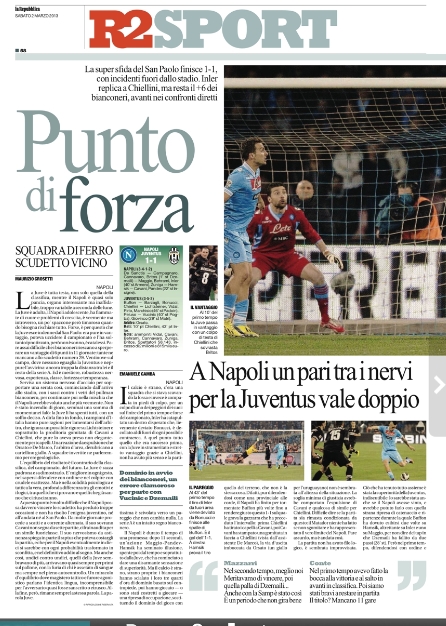 Ci aspettavamo più polemiche in questa day after di Napoli-Juventus, ma evidentemente in campo ne sono successe talmente tante, ma sempre in ambito sportivo, da non far ritenere ai giornali italiani di continuare con i dibattiti. Botte, tirate di capelli, scorrettezze di ogni tipo, ma al fischio finale solo abbracci e strette di mano, è stato certamente un bello spot per il calcio, tant’è che oggi si commenta il risultato e basta.