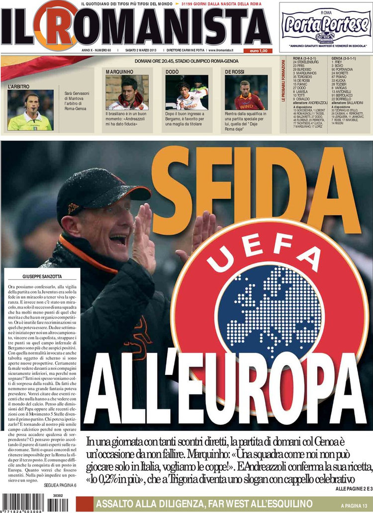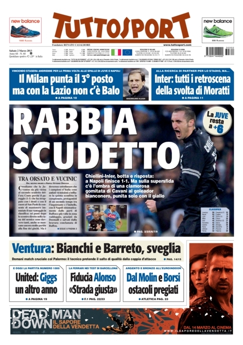 Le prime pagine dei giornali sportivi di oggi 2 marzo 2013