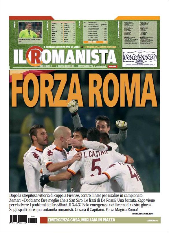 Kakà ad esempio, sempre più vicino al Milan, o il big match di stasera Roma-Inter che carica non solo il Romanista che oggi si sente più tifoso che mai, ma anche gli altri giornali che attendono con ansia una sfida che ci garantisce una valanga di gol. La trattativa per Balotelli, il poker di Del Piero in Australia ed altre operazioni di mercato completano la giornata. A voi le prime pagine.