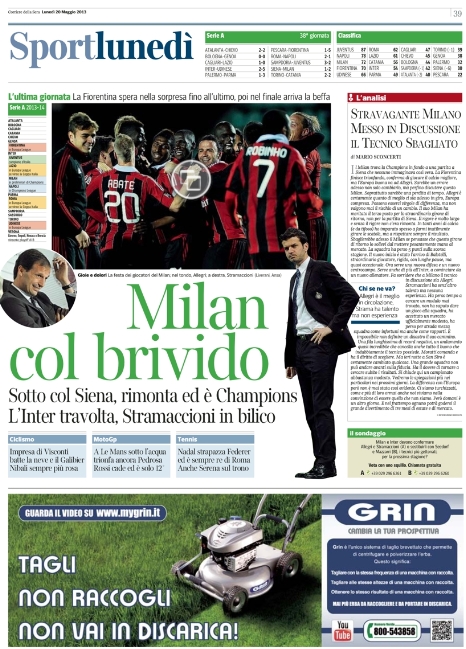 1 commento su “Le prime pagine dei giornali sportivi di oggi 20 maggio 2013”