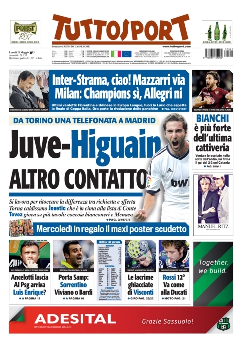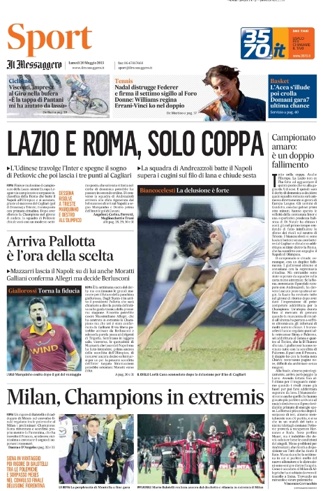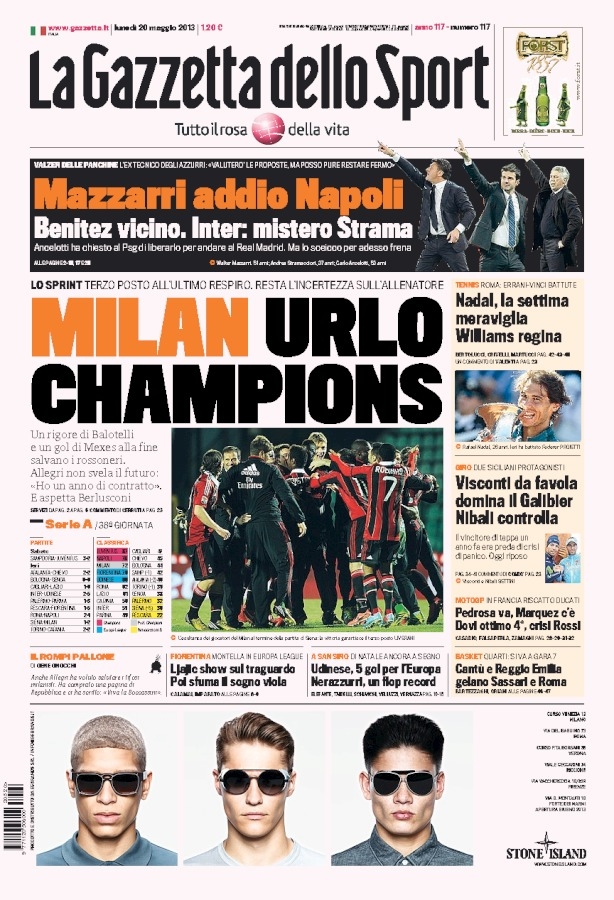 Le prime pagine dei giornali sportivi di oggi 20 maggio 2013