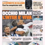 L’Inter c’è, è rinata, e le figuracce in campionato sono lontane. La tisana europea rimette in sesto i nerazzurri che, nella settimana dell’impresa del Milan contro il Barcellona, rilanciano le proprie speranze per il derby. Anche perché a differenza dei cugini ieri Stramaccioni ha fatto un certo turnover, e spera di avere qualche energia in più dei rossoneri. Sui giornali di oggi dunque si gioca tutto sull’asse Europa-Milano intesa come coppe e derby. Ma c’è anche dell’altro.