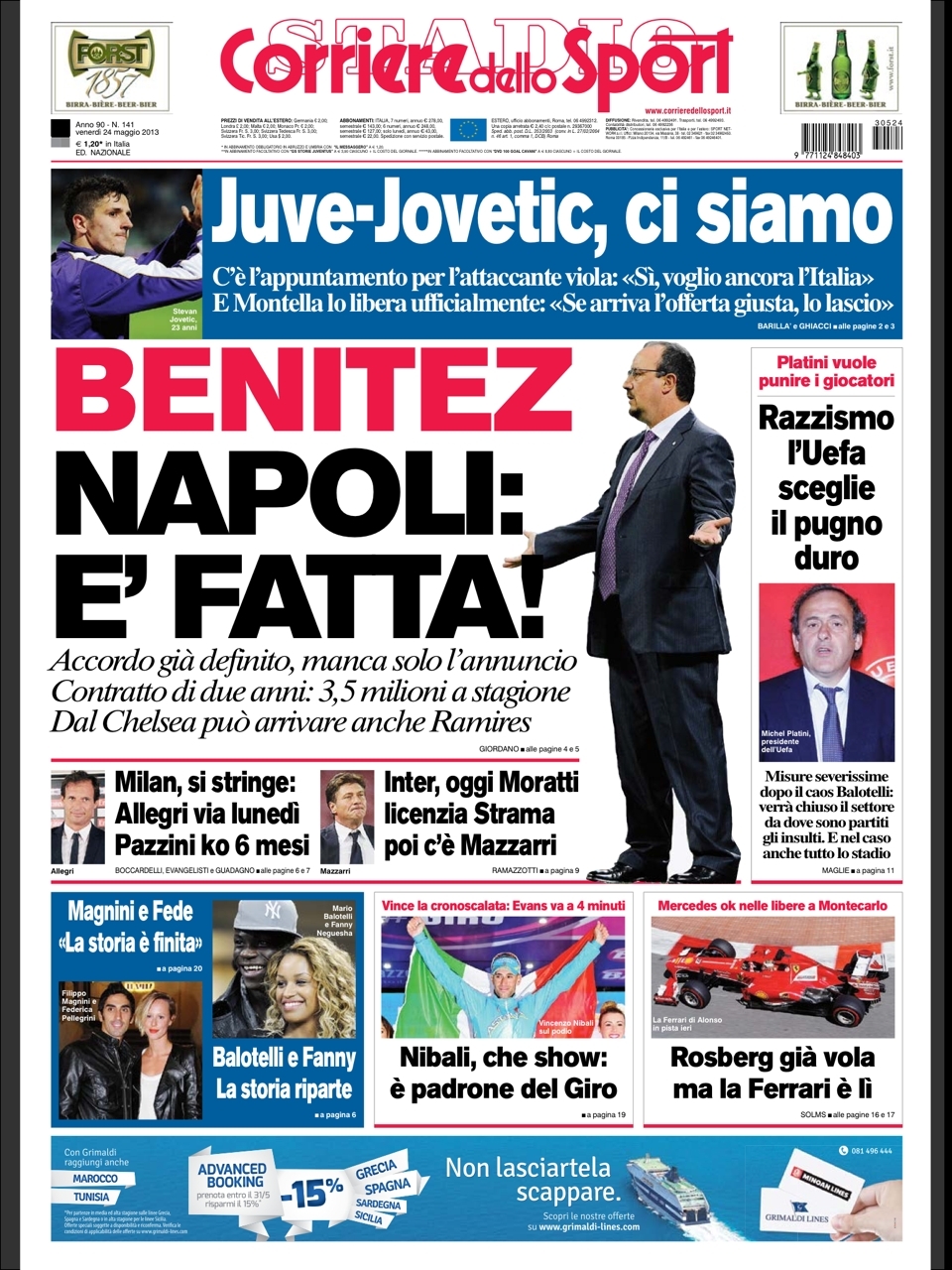 Le prime pagine dei giornali sportivi di oggi 24 maggio 2013