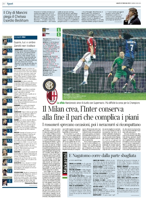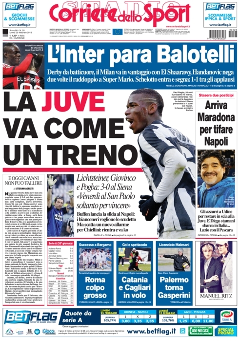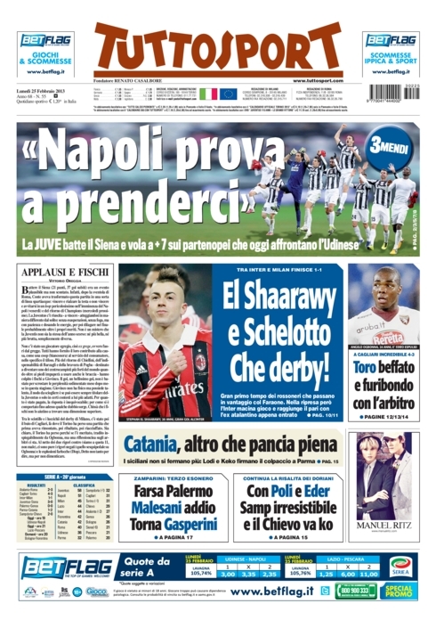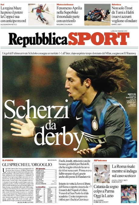 Le prime pagine dei giornali sportivi di oggi 25 febbraio 2013