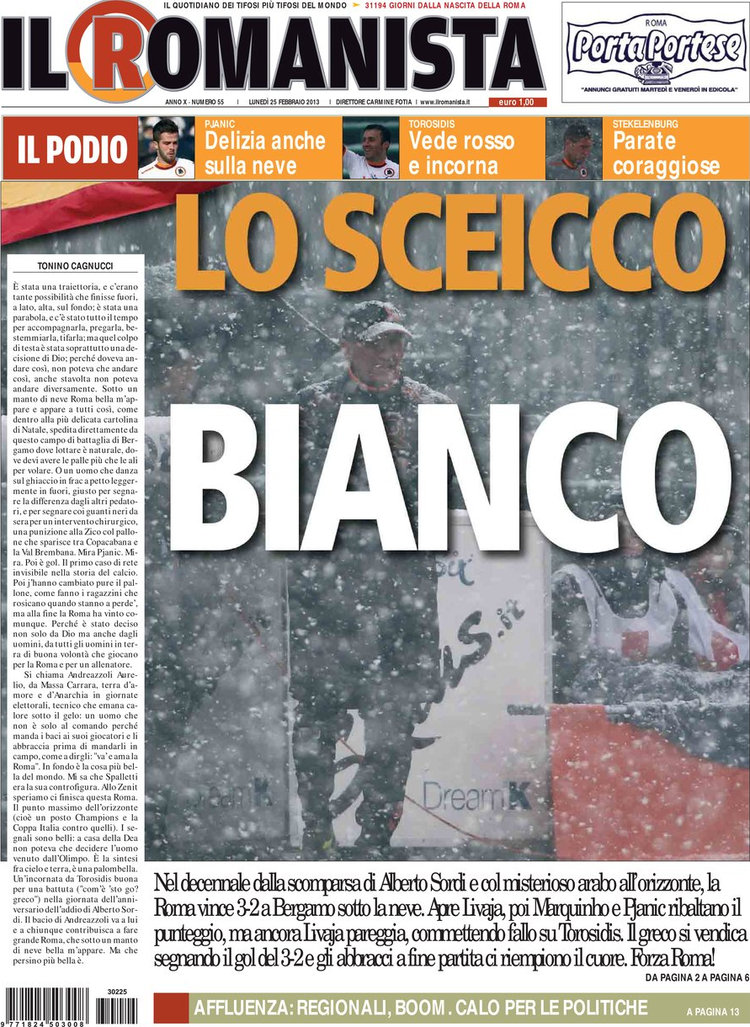 Il Romanista si gode la vittoria e però rimane in attesa, come tutti noi, di saperne di più su questo fantomatico sceicco, mentre all’estero, ed in particolare in Spagna, si pensa solo all’Europa ed alla voglia che Real e Barcellona hanno di rifarsi dopo le due brutte partite delle scorse settimane in Champions, nonostante ci vogliano ancora una decina di giorni per rivedere in campo i blancos e ancora di più per il Barça.