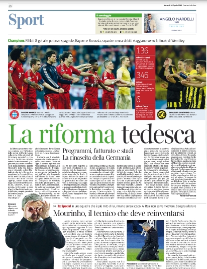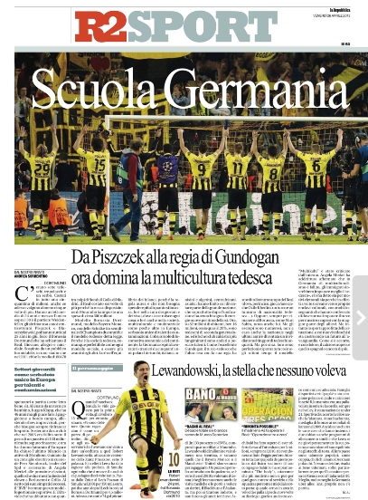 Per quanto riguarda il calcio giocato, comincia a salire la febbre per il derby di Torino, con i granata che vogliono rovinare la festa scudetto ai cugini, mentre tutti dovrebbero prendere esempio dal modello tedesco per rilanciare il campionato, basandolo su un progetto serio che preveda investimenti e stadio. Impareremo mai? Per adesso leggiamoci le prime pagine di oggi.