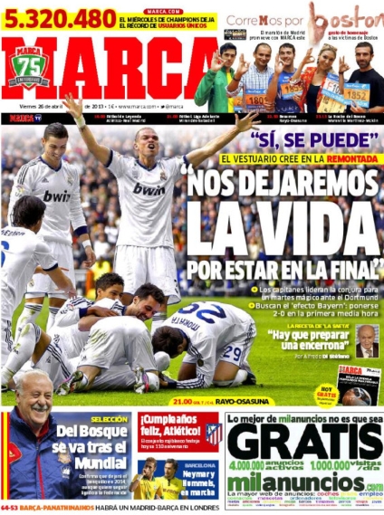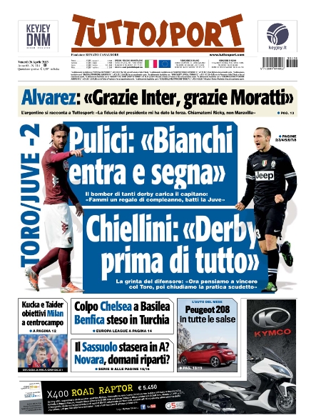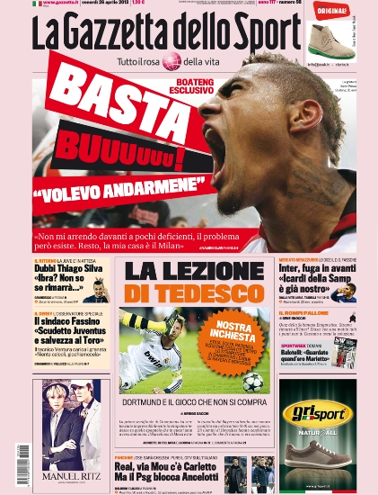 Le prime pagine dei giornali sportivi di oggi 26 aprile 2013