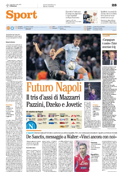 Anche perché pure il Mattino ribadisce l’interesse degli azzurri che, con la cessione di Cavani, potrebbero ingaggiare lui e Dzeko per comporre un attacco stellare che punta a vincere il campionato. E così mentre le piccole diventano grandi, c’è una grande che rischia di ritornare piccola. È l’Inter che senza la Champions annuncia nuovi tagli in squadra, a meno che non arrivino investitori stranieri. Ma rischia di fare la stessa fine anche il Milan che, dopo appena una stagione positiva, rischia di lasciar partire El Shaarawy, anche se il nome del sostituto è di tutto rispetto, ovvero Lavezzi.