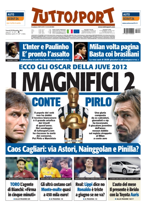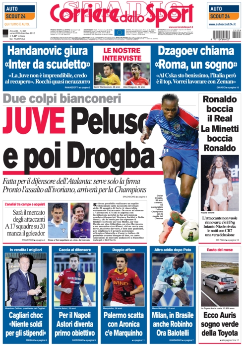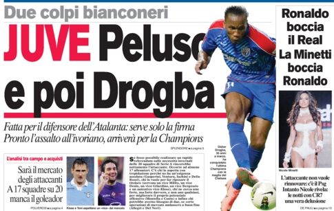 C’è aria di festa nelle redazioni dei quotidiani sportivi italiani. Il Natale, con i suoi eccessi, è ormai alle spalle, e così la vacanza che ancora la maggior parte dei club di Serie A può vantare si riflette sulle redazioni milanesi e romane. L’unica a pensare a qualcosa di concreto è quella del Corriere dello Sport che dà ormai per certo, come ormai sappiamo, l’arrivo di Peluso alla Juventus, con i bianconeri che ora proveranno l’assalto a Drogba.
