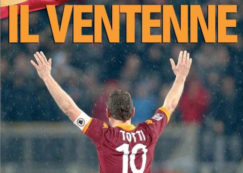 Totti, Totti e ancora Totti. Per almeno 20 volte. Sarà questo il reframe di oggi, giorno in cui si celebrano i 20 anni di carriera di Francesco Totti, un calciatore che nelle ultime stagioni sembra rinato e sembra tornato, come titola oggi il Romanista, un ventenne. Su molti giornali si parla di lui sin dalla prima pagina, e sulla Gazzetta non poteva mancare uno speciale di diverse pagine, mentre sul Corriere si pubblicizza persino un libro sulla sua storia.