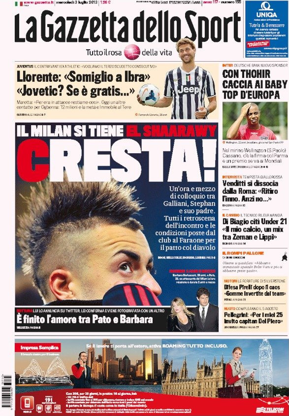 Stephan El Shaarawy resta al Milan. È questa la notizia con cui aprono tutti i giornali di oggi, e non è di certo scontata dopo che per diverse settimane il Faraone sembrava venduto ogni giorno ad una squadra diversa. Il colloquio con Galliani è andato bene, e così ora il Milan riparte da lui e magari da qualche altro acquisto come Emeghara, seguito dai rossoneri secondo quanto riporta Tuttosport.
