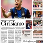 Le prime pagine di oggi però non sono tutte solo del Milan. I rossoneri devono dividere gli onori della cronaca con i cugini, anche se non sono molto contenti di farlo. I nerazzurri infatti vengono sbattuti in prima pagina a causa della lite tra Cassano e Stramaccioni, ridimensionata nel pomeriggio dal tecnico, ma che di fatto lascia a casa Fantantonio che non è partito per Catania. Chissà quanti strascichi porterà questa decisione. Una potrebbe essere addirittura il cambio del tecnico, visto che secondo il Corriere dello Sport l’Inter starebbe tentando di ingaggiare Mazzarri.