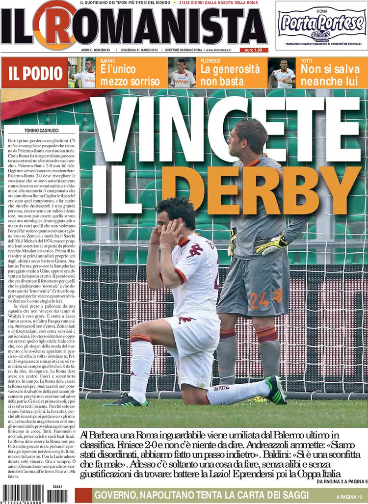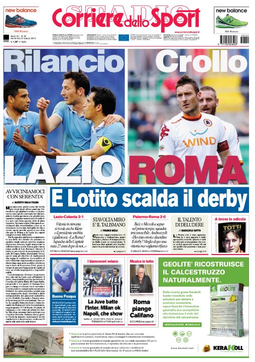 Ma ci sono anche le note negative, ovvero quelle della Roma che, perdendo contro l’ultima in classifica, non solo vede allontanarsi il treno europeo, comunque ancora raggiungibile, ma a preoccupare è il fatto che la squadra mostra alcune lacune dell’era Zeman che ancora i calciatori non si sono scrollati di dosso. Gli spunti sono davvero tanti, quindi vi lasciamo direttamente alle prime pagine di oggi augurando a tutti i lettori di Calciopro una buona Pasqua.