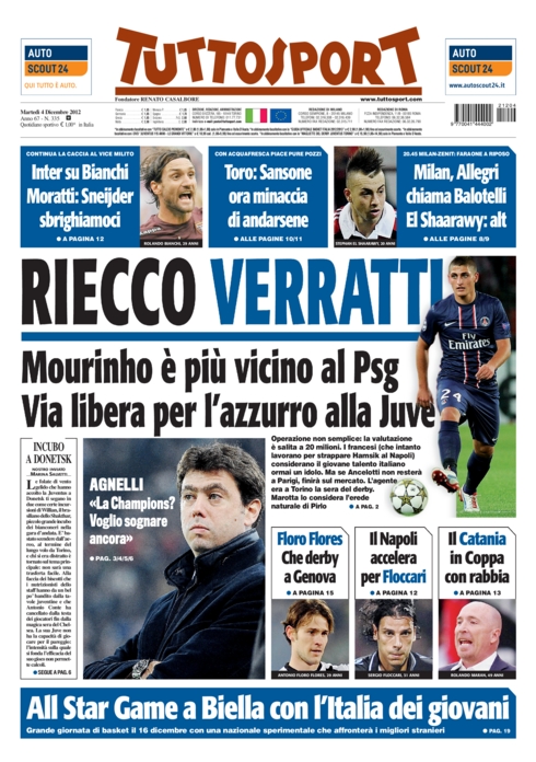 Le prime pagine dei giornali sportivi di oggi 4 dicembre 2012