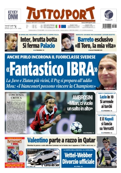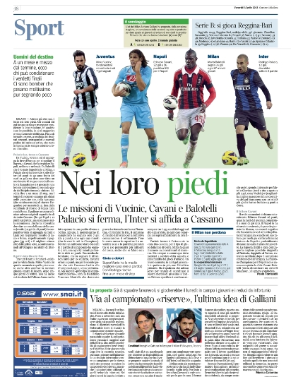 Le prime pagine dei giornali sportivi di oggi 5 aprile 2013