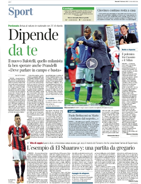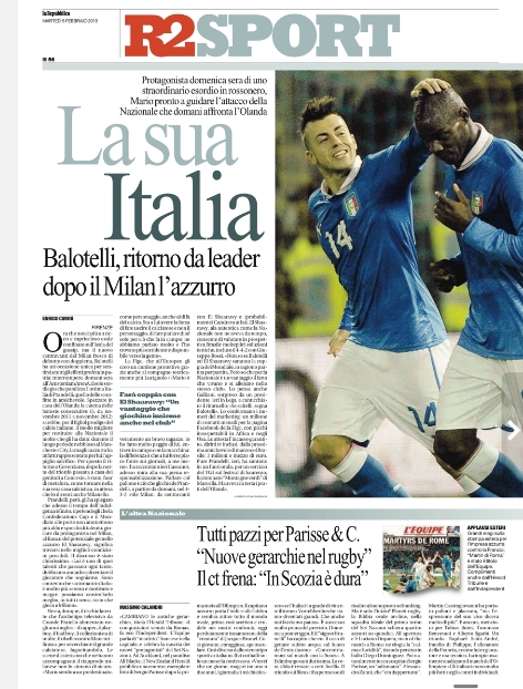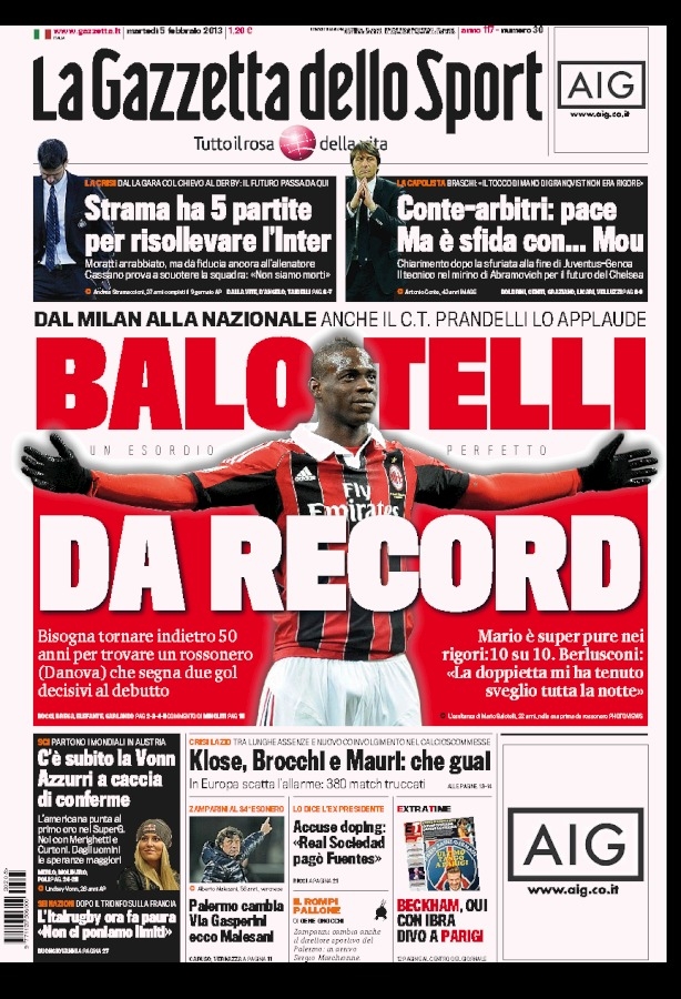 È una giornata ricca di spunti (e di polemiche) quella che sta per iniziare. Ogni giornale dice la sua, facendo capire che non c’è un argomento preponderante ma ognuno affronta l’argomento calcio a suo modo. La Gazzetta ad esempio apre con una prima pagina piuttosto noiosa. Non abbiamo nulla contro Balotelli, ma è una settimana che è in prima pagina sulla Rosea, e comincia un po’ a stancare.
