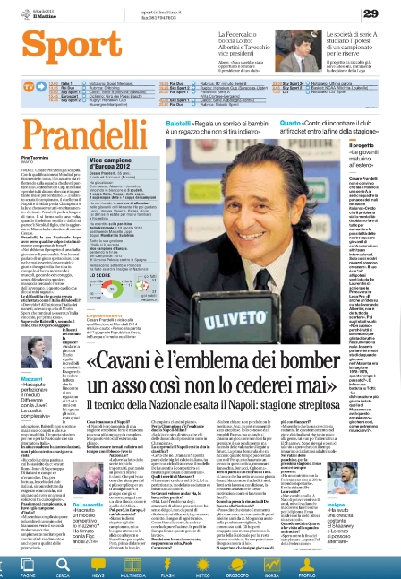 Nel frattempo vediamo gli altri temi di oggi. A tenere banco oggi è De Laurentiis che ha cambiato idea ed ha annunciato che non venderà Cavani. Un annuncio forse arrivato in ritardo visto che secondo molti l’uruguaiano ha già le valigie pronte. Per quanto riguarda la giornata di campionato, sono due sfide che accendono la tensione in Serie A: Milan-Fiorentina ed il derby di Roma. Il Romanista lo ha praticamente inaugurato da una settimana, avviando un conto alla rovescia che oggi ha come protagonista le due tifoserie, ed un Francesco Totti in versione “comico”, dato che riporta tutti gli sfottò fatti ai cugini in questi ultimi vent’anni. I biancocelesti invece ci arrivano con l’amarezza della sconfitta in Europa League, acuita dalle parole dell’Uefa che ha ammesso che gli errori arbitrali anti-Lazio sono stati eccessivi. Speriamo si facciano perdonare la prossima volta. Queste le prime pagine di oggi.