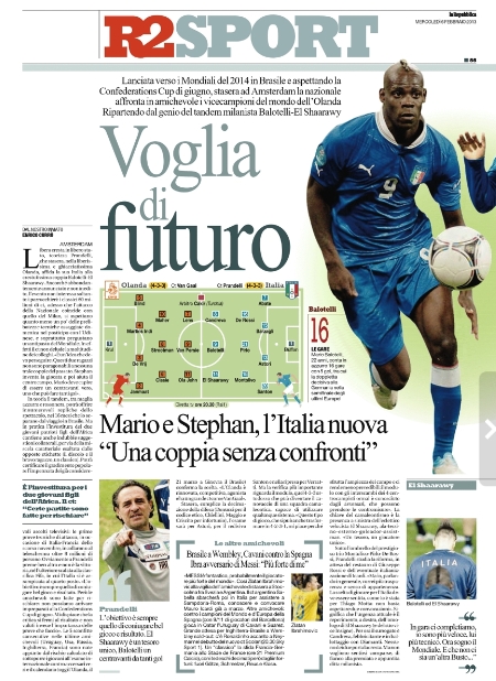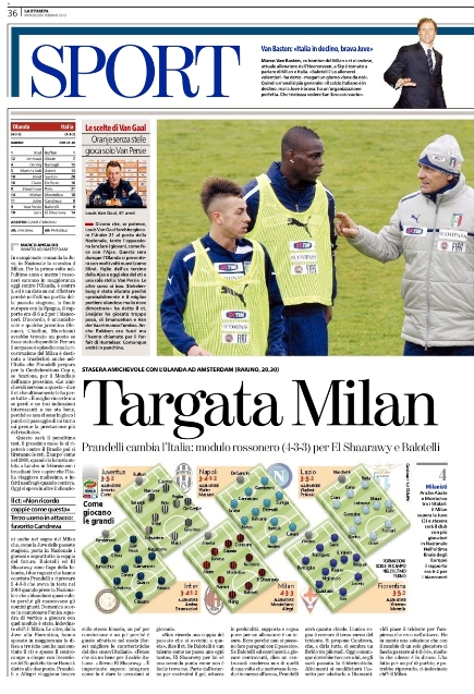 Oggi è il giorno delle nazionali, e mentre gli azzurri saranno ospitati ad Amsterdam per un’amichevole probante contro l’Olanda, anche su altri campi spiccano amichevoli di primo piano come ad esempio Inghilterra-Brasile. I giornali di casa nostra ovviamente pensano agli azzurri, ed in particolare alla strana coppia d’attacco a cui ci dovremo abituare visto che entrambi sono giocatori del Milan, e soprattutto sono entrambi giovanissimi, il che lascia immaginare che giocheranno insieme ancora per molto tempo.